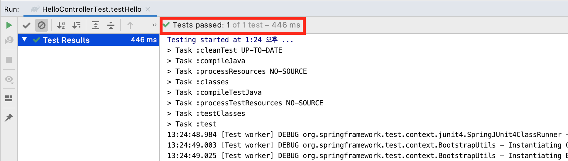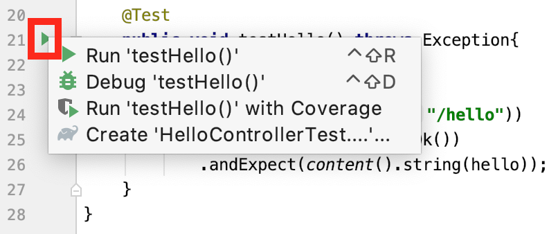 이제 hello() 메소드를 테스트할 테스트 코드를 작성하겠습니다.