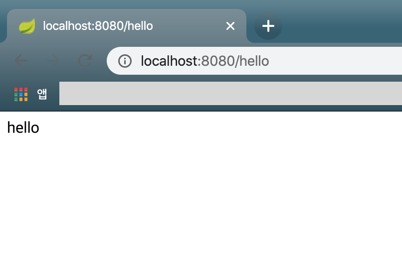 이제 웹 브라우저에서 localhost:8080/hello로 접속해 결과가 잘 출력되는지 테스트해보겠습니다.