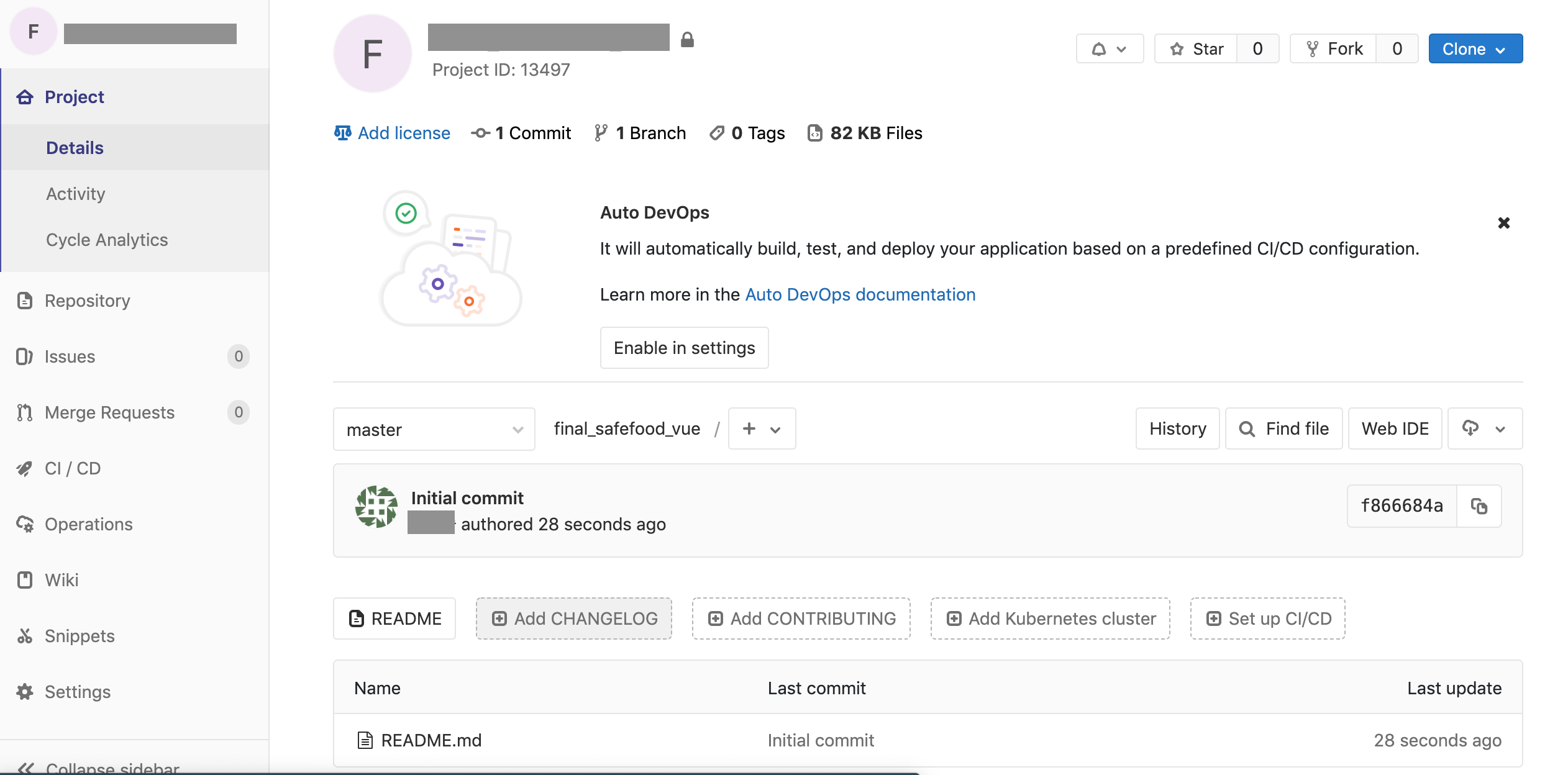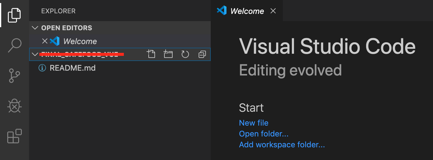 README.md 파일이 포함된 프로젝트가 생성된 것을 확인할 수 있습니다.