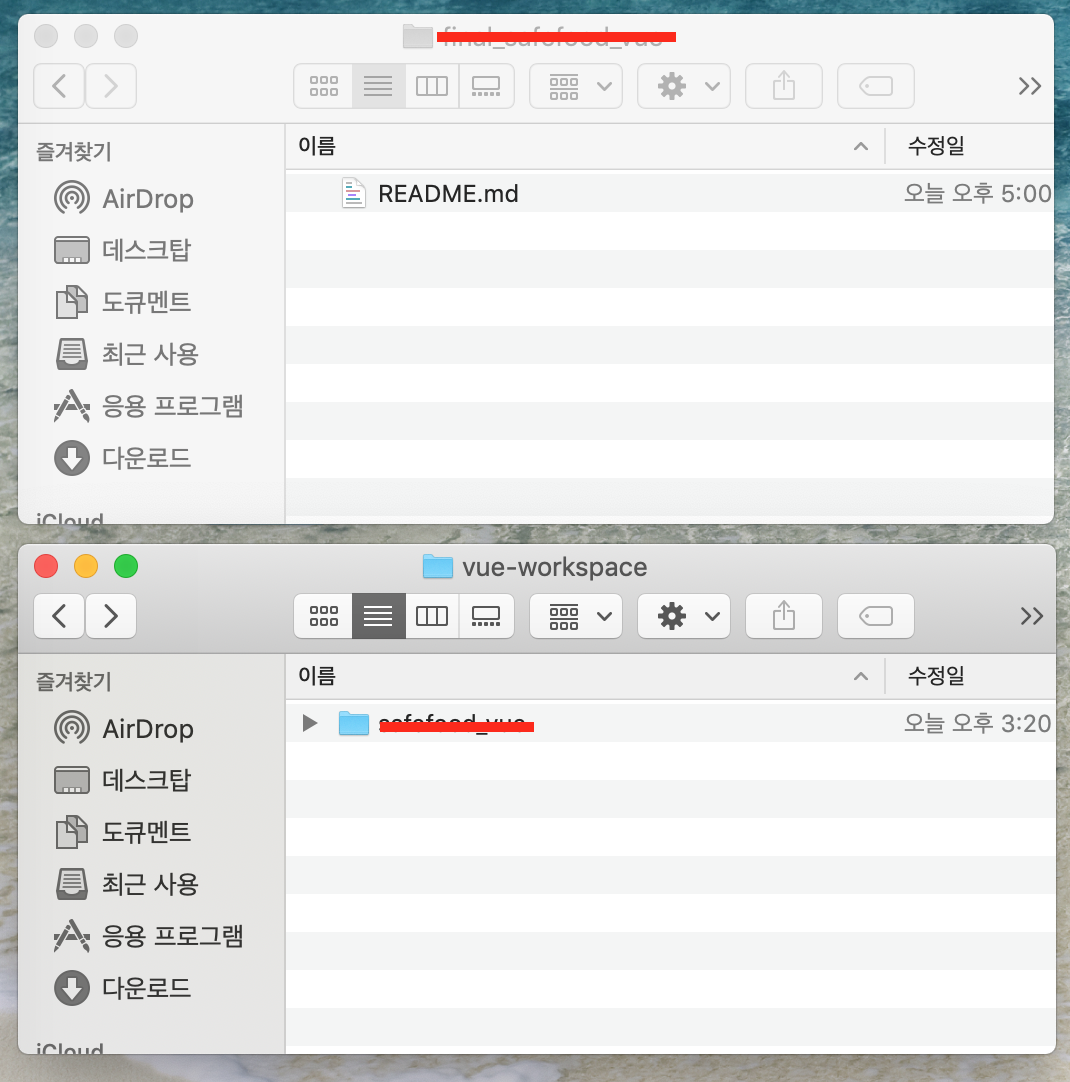 Finder에서 vue-workspace가 있는 위치로 이동합니다.