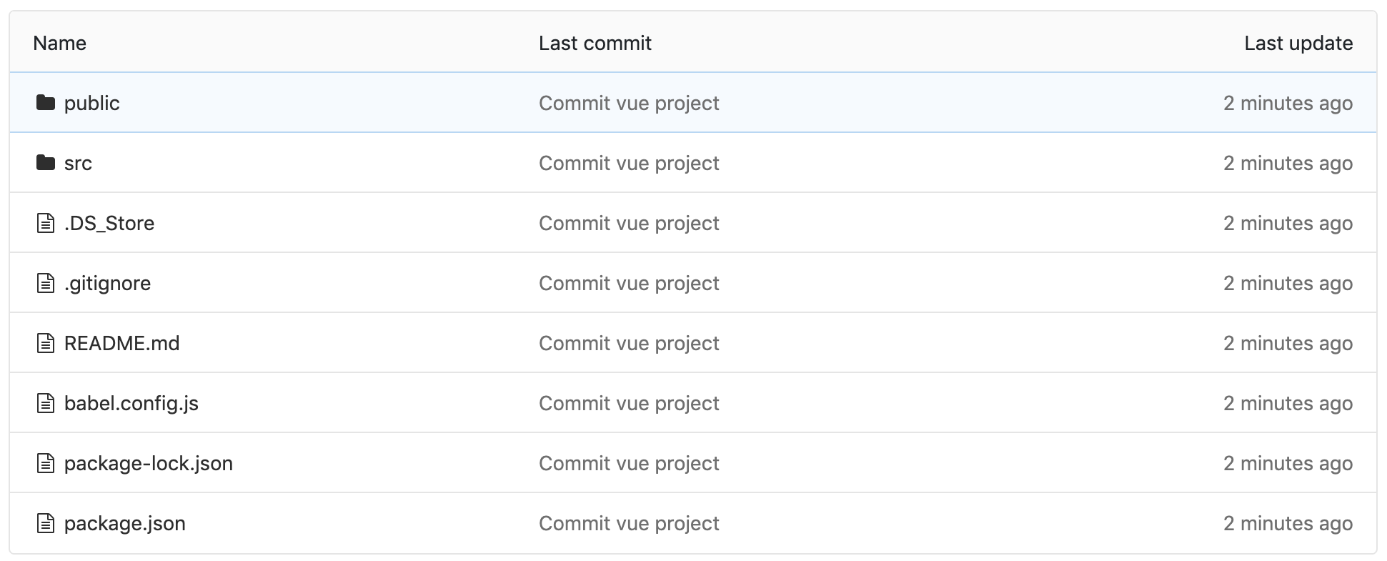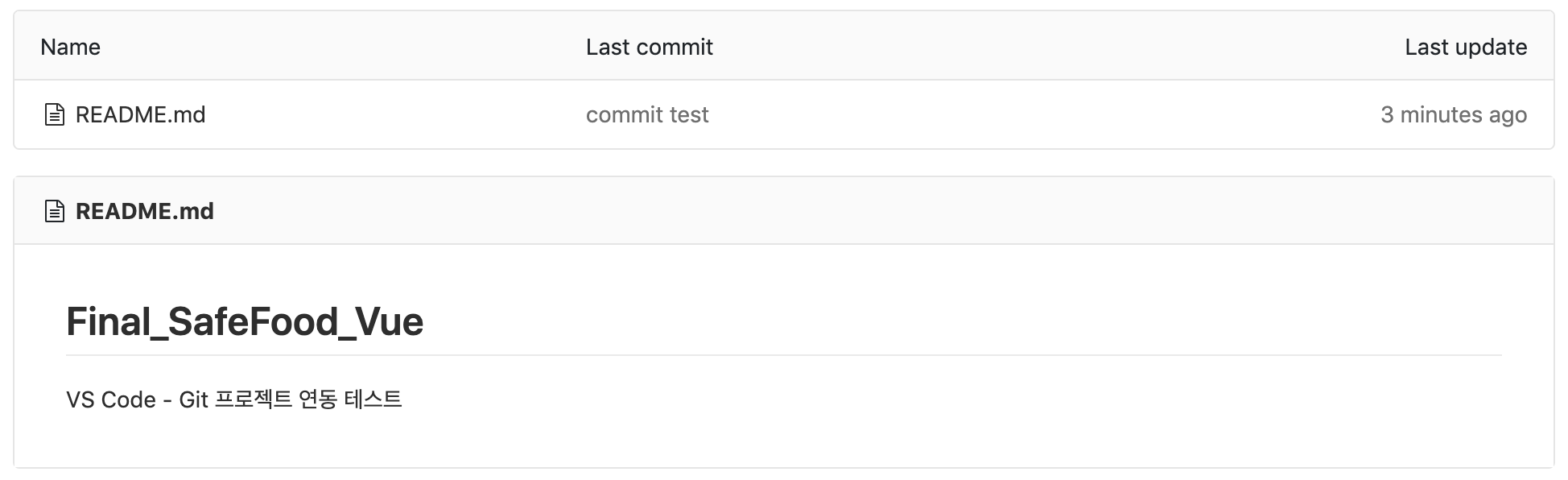 VS Code에서 vue 프로젝트와 동일한 구조를 확인할 수 있고, Git 사이트에서도 commit이 제대로 이루어진 것을 확인할 수 있습니다.